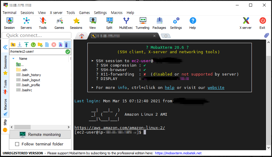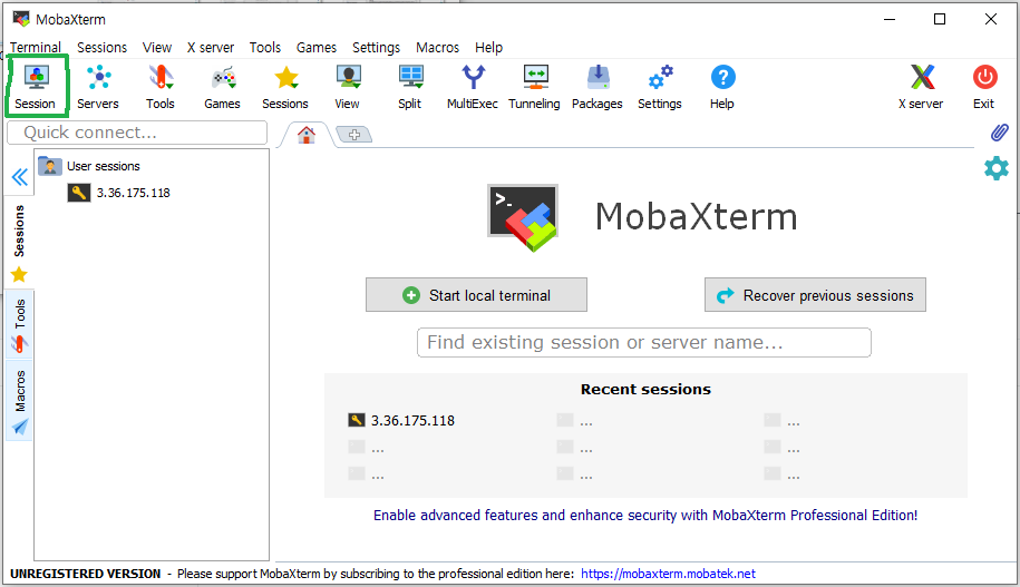( putty를 보통 많이 사용하시지만 mobaxterm을 사용하게 되면 더 많은 편의 기능을 사용하실 수 있습니다. )